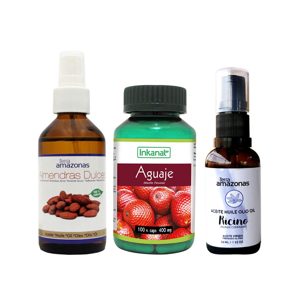 Pack Belleza Completa Aceite de Almendras Dulces (100 mL) + Aguaje en Cápsulas (100 x 400 mg.) + Aceite de Ricino (30ml) – Comprar